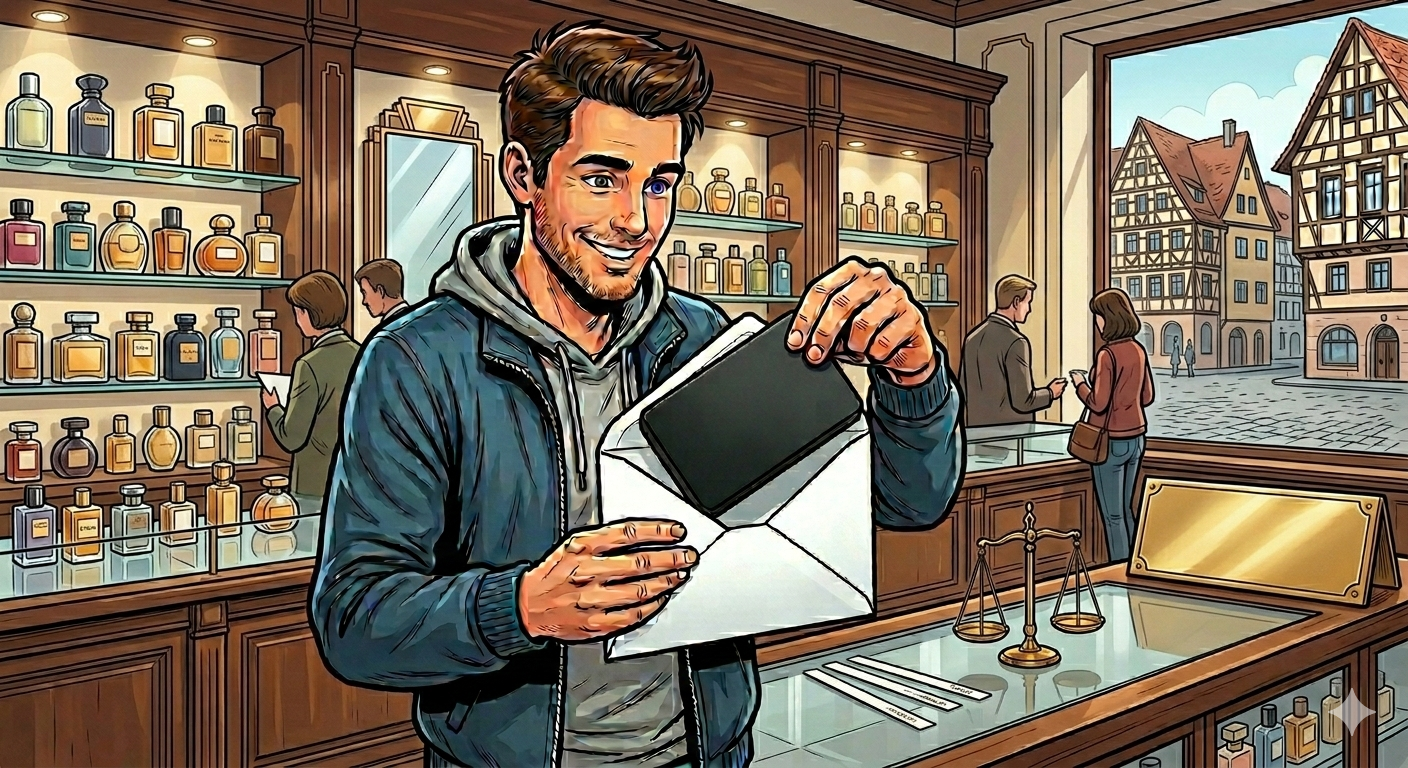 Wir füllen dir den Duft ab und bringen die Kuverts ein bis zwei Mal pro Woche zum Briefkasten. Bitte habe Geduld bei dieser Art von Versand, da wir weder den Verbleib prüfen, noch die Geschwindigkeit beeinfluss können.
